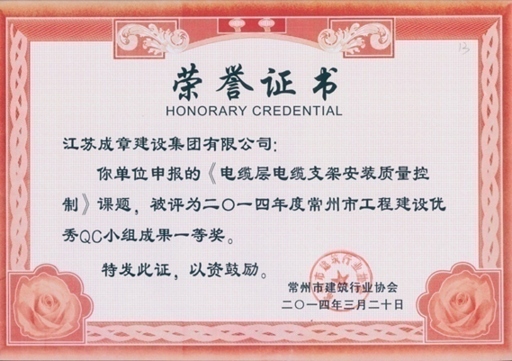 2014年度江蘇省工程建設優(yōu)質質量管理小組活動成果優(yōu)秀獎