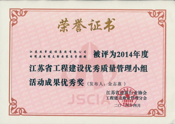 2014年度江蘇省工程建設優質質量管理小組活動成果優秀…